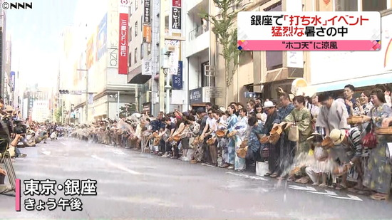連日、都内でも厳しい暑さが続く中、3日、東京・銀座では一斉に「打ち水」を行うイベントが行われた。