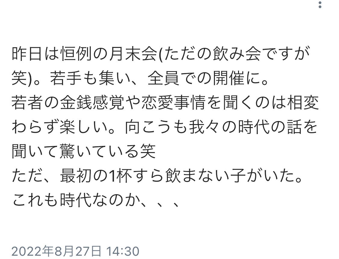 【悲報】上司「飲み会なのに一杯も飲まない子がいた、嘘だろ…」